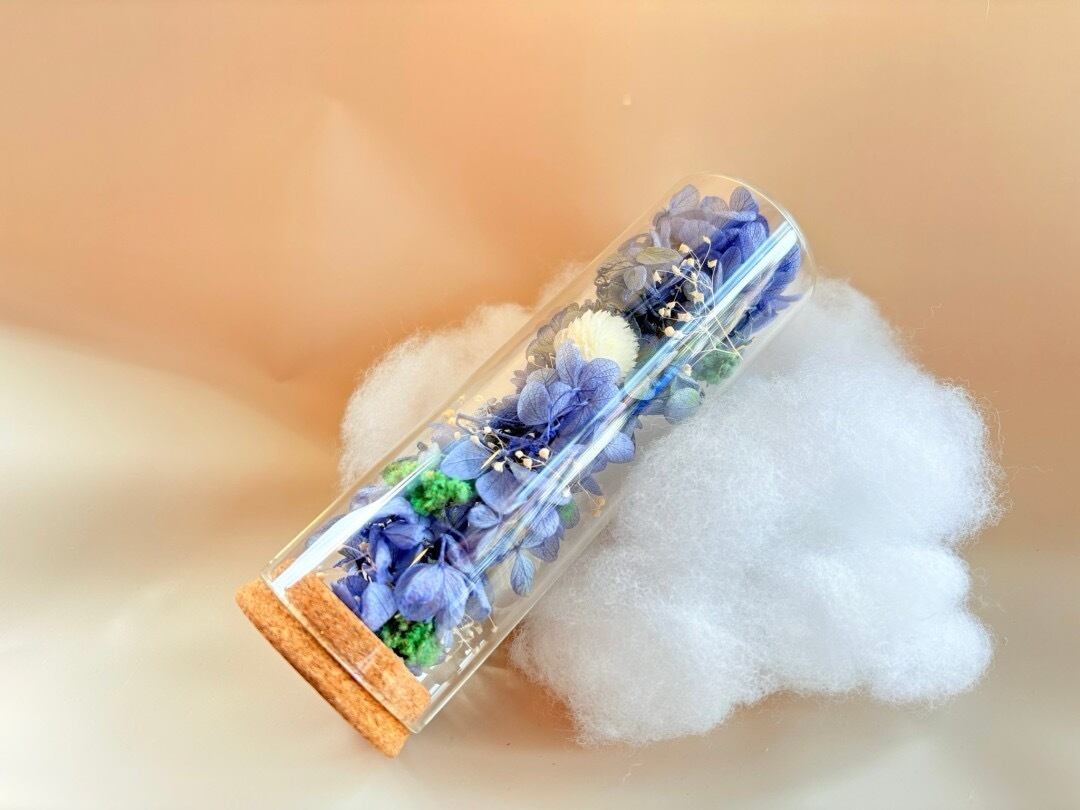 ・素材: プリザーブドフラワー、グラスシリンダー、コルク